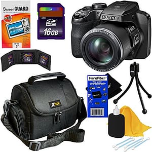 Fujifilm FinePix S9900W 16.2 MP Wi-Fi Digital Camera with 50x Optical Image Stabilized Zoom and Full HD 1080i Videos (Black) + 7pc Bundle 16GB Accessory Kit w/ HeroFiber® Ultra Gentle Cleaning Cloth