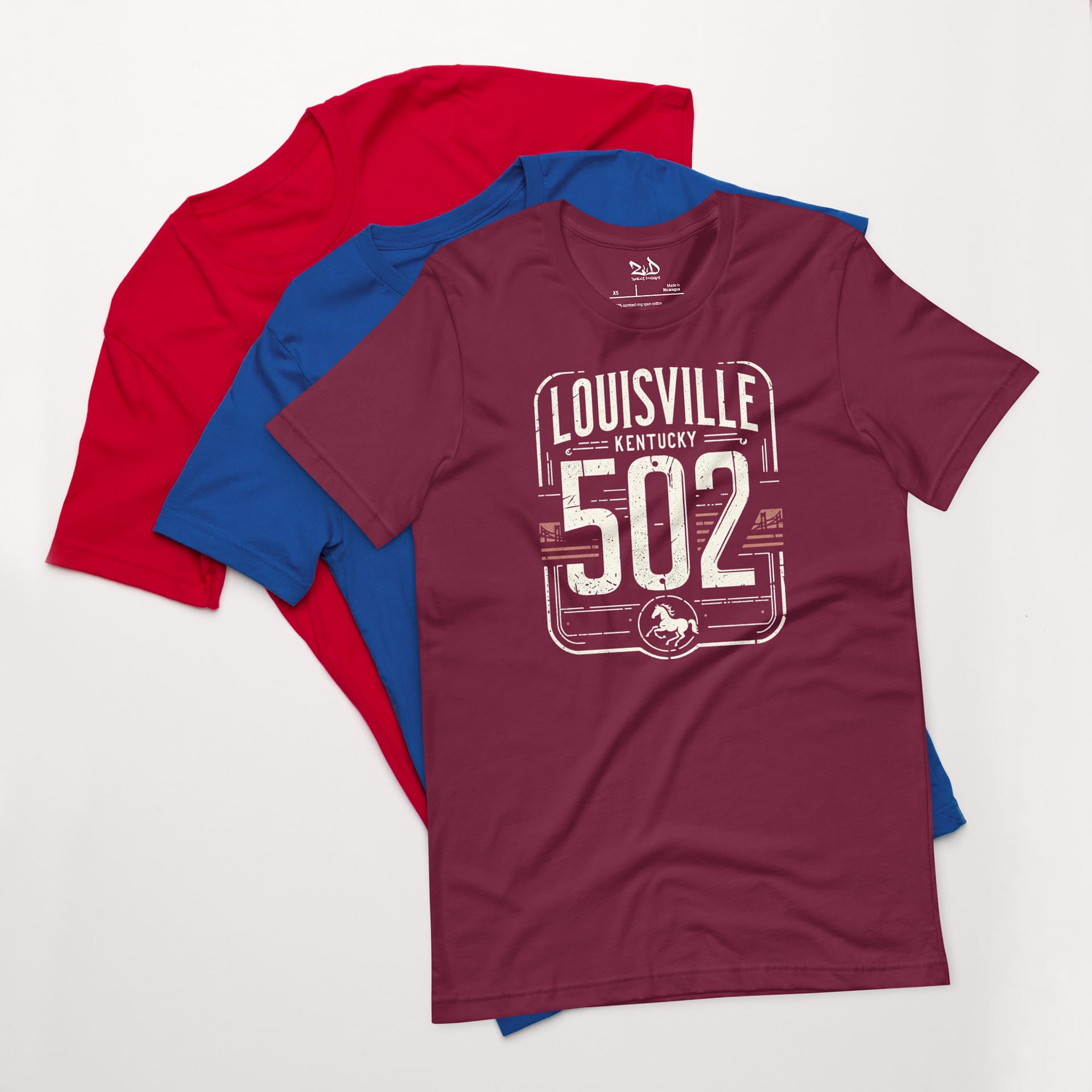 Celebrate the heart of Kentucky with the Louisville 502 Iron Streets design, where bold street sign lettering meets authentic city pride. A powerful ‘502’ anchors the layout, surrounded by gritty, weathered textures that echo the real streets of Louisville. Detailed imagery of a racing horse and iconic bridge silhouettes tie the piece deeply to the city’s spirit — from its legendary horse racing heritage to its historic waterfront. A rugged palette of black, deep red, and aged gold gives the design a strong, worn-in edge. This artwork captures the soul of Louisville with a fearless attitude.