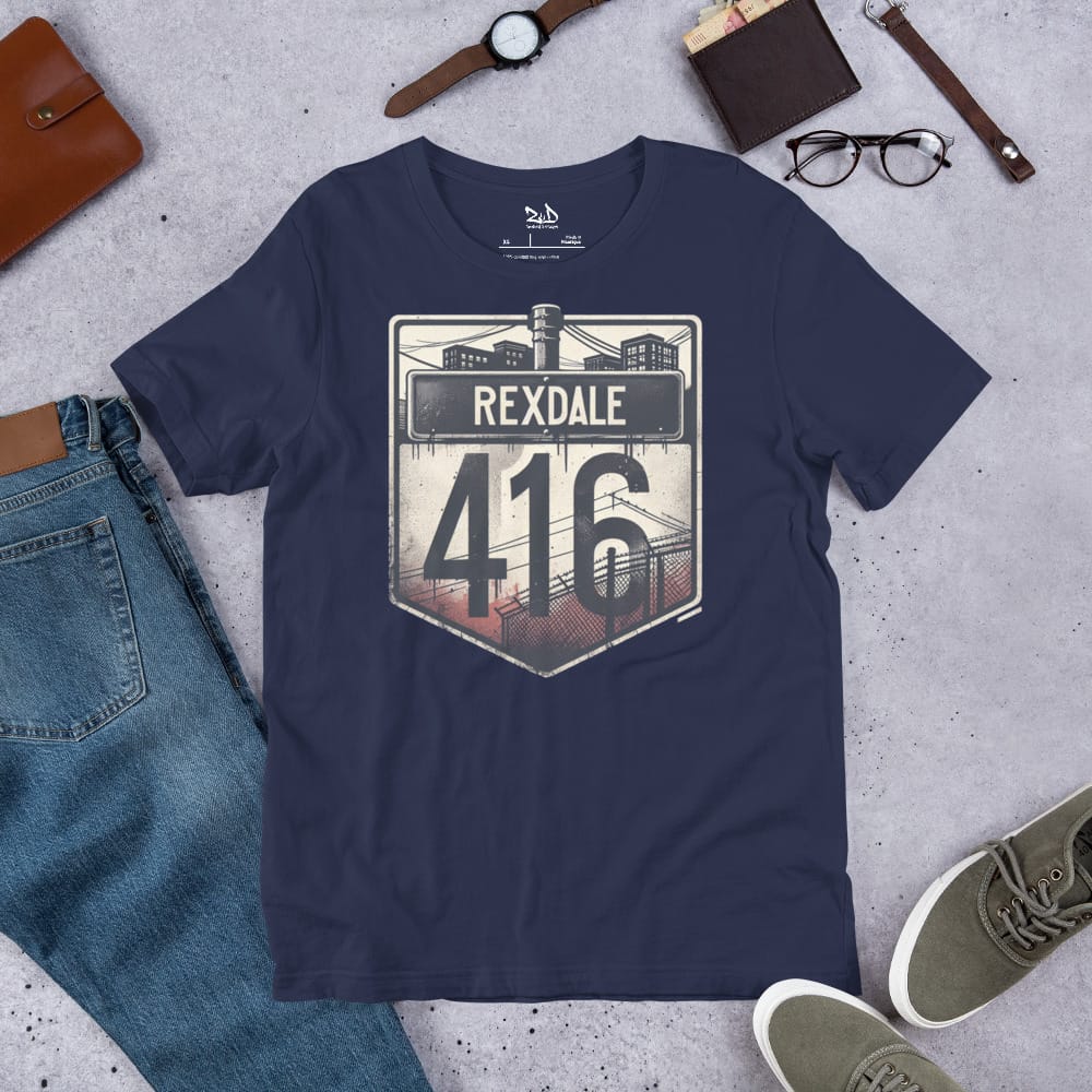 Show out for the West End with this bold Rexdale streetwear design, repping Toronto’s 416 with gritty style and authenticity. Featuring a large, distressed Rexdale street sign.